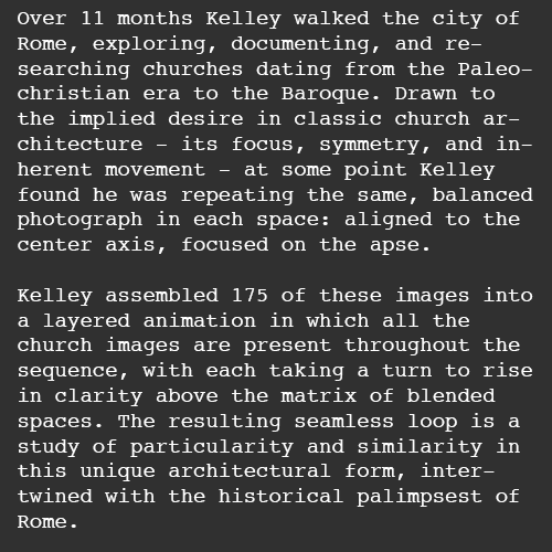 performance video of 129 Rome Churches, accompanying Lei Liang's In Praise of Shadows (youtube)